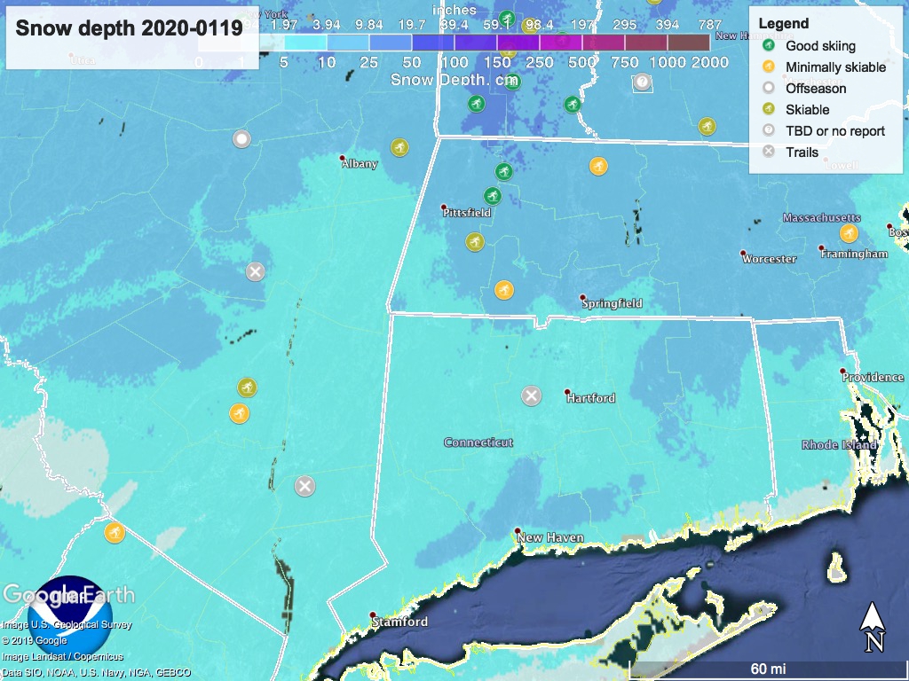 Despite a warming trend starting Thursday, areas like Notchview, Prospect Mountain, and Brattleboro will probably be able to hang onto skiable trail through the end of the week.