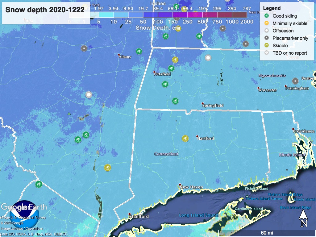 Potentially heavy rain will arrive across virtually all the northeastern US on Christmas Eve. The amounts forecast plus the warm temperatures from the daytime will almost certainly result in unskiable conditions for Friday. By Saturday afternoon, some touring centers may be able to groom enough to be worth opening. Backcountry conditions could be too thin or icy or both.