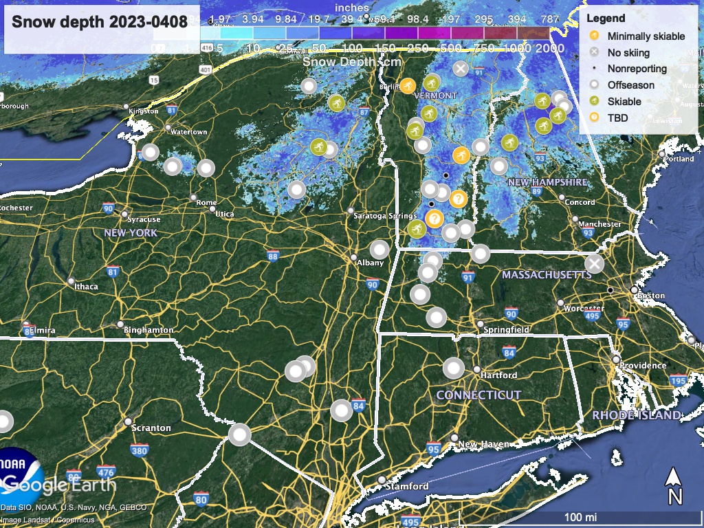 Hit up ‘State of the touring centers‘ or in the menu above for reported conditions as of today. Snow depth graphic below: