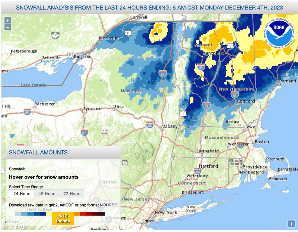 The good news: a storm did go through the northeast (USA) and drop as much as 8″ of snow on the northern higher elevated areas.