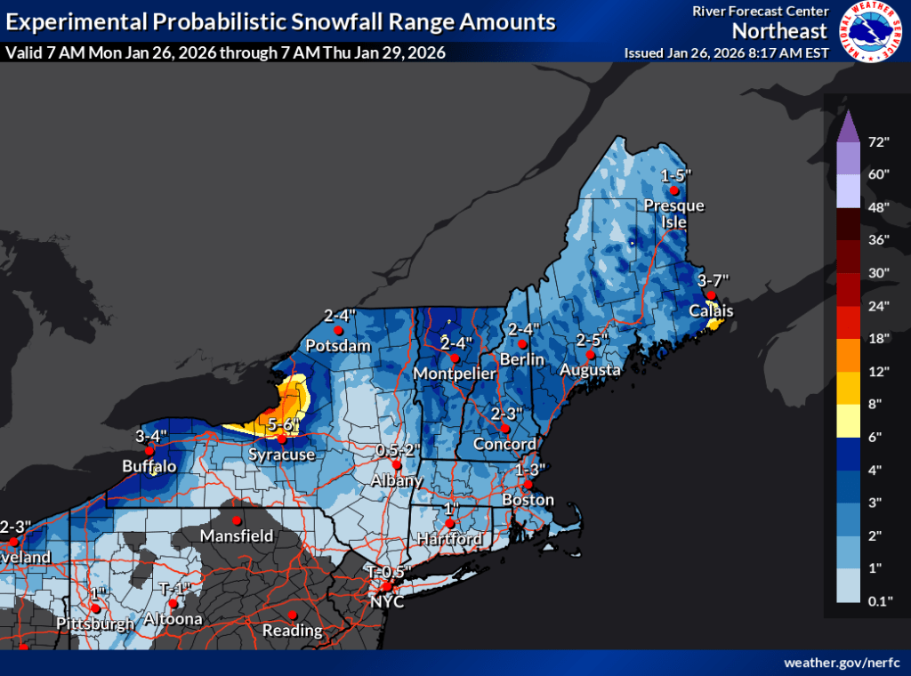 You probably already know that the midwinter conditions are staying with us through this week and into next – Yay! There will also be some light refreshes of snow in far northern Vermont, New York, and some lake effect snow in the Tug Hill during the week. Some NWS stations are monitoring for a possible coastal storm for next weekend, but there is no certainty a storm will develop or impact the region.